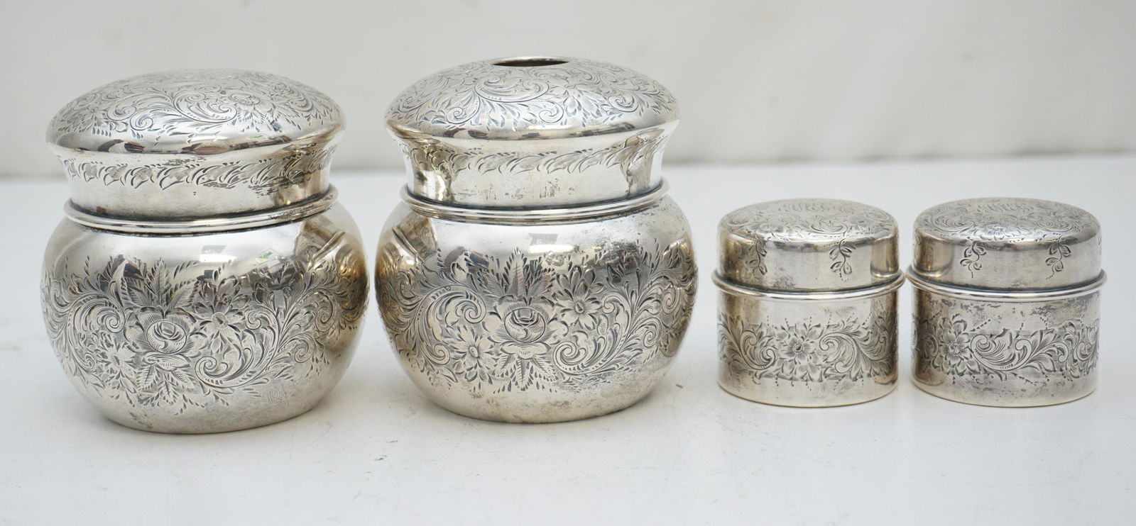 4 ANTIQUE STIEFF STERLING SILVER VANITY SET