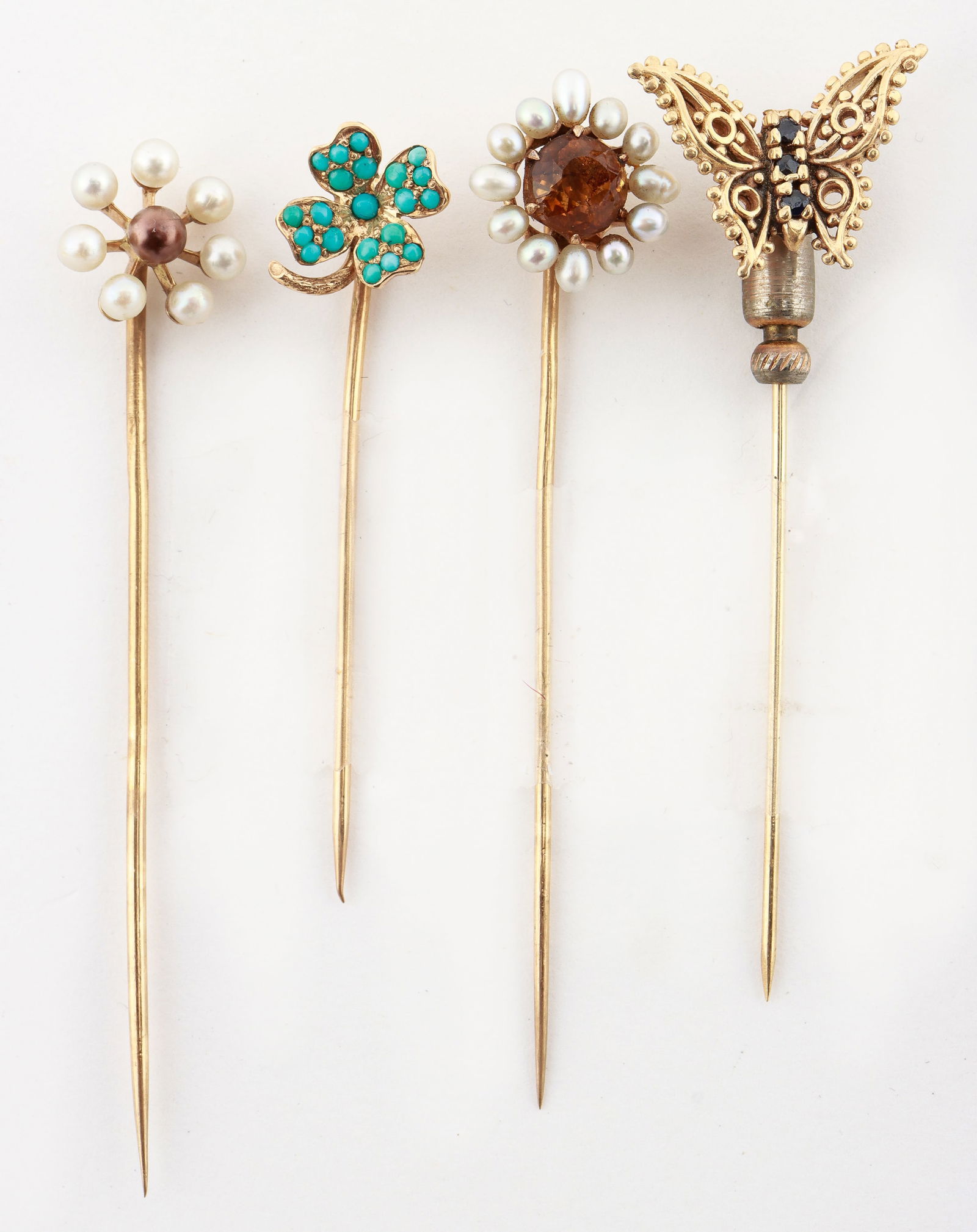 4 Antique Unmarked Stickpins