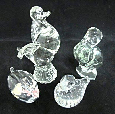 Handblown Clear Glass Animal Paperweights