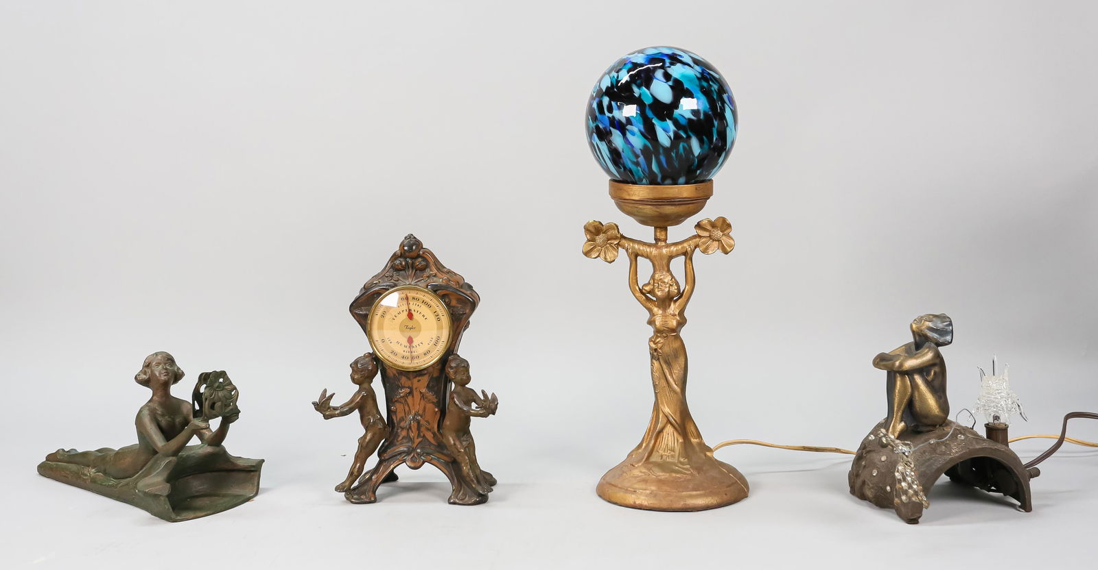 Estate Lot of 2 Chinese Table Lamps - Soapstone Figural & Famille Noir Painted PorcelainMar 15, 2026Pair of Marble Obelisks & Pair of Decorative Balls12 hrs LeftFour Vinage Ceramic Brass Glass Pod VasesJul 24, 2025Pair point Boudoir French Empire and Art Nouveau Table Lamps (3)Mar 28, 2026Three Neoclassical Style Patinated Metal Table Lamps4 days LeftThree Chinese Porcelain Table Lamps4 days LeftCherub Figurine and Hurricane Lamps (4)Mar 28, 2026Art Nouveau Style Patinated Metal Table Lamp4 days LeftBRASS SHIP'S LIGHT AND CHAMBERSTICK LAMPMar 22, 2026Clayton & Bailey and 19th Century Kerosene Lamps6 days Left2 table lamps, silver plates with decorative reticulated designs & copper table lamp with mica shade2 days LeftTwo table lamps, Spode style urn form lamp & brass column lamp with pressed decorations, 24.5" & 36"2 days LeftLouis XVI Style Ormolu Bouillotte Lamp4 days LeftGilt Metal Female Lamp on Lily Pad Base with Art Glass Blue Aurene Style Shade, (16"H x 7"w) AND3 days Left19th to 20th Century Clocks and Clock Related Parts (8)Mar 28, 2026PAIR OF BRASS TABLE LAMPS MAISON CHARLES STYLEMar 21, 2026