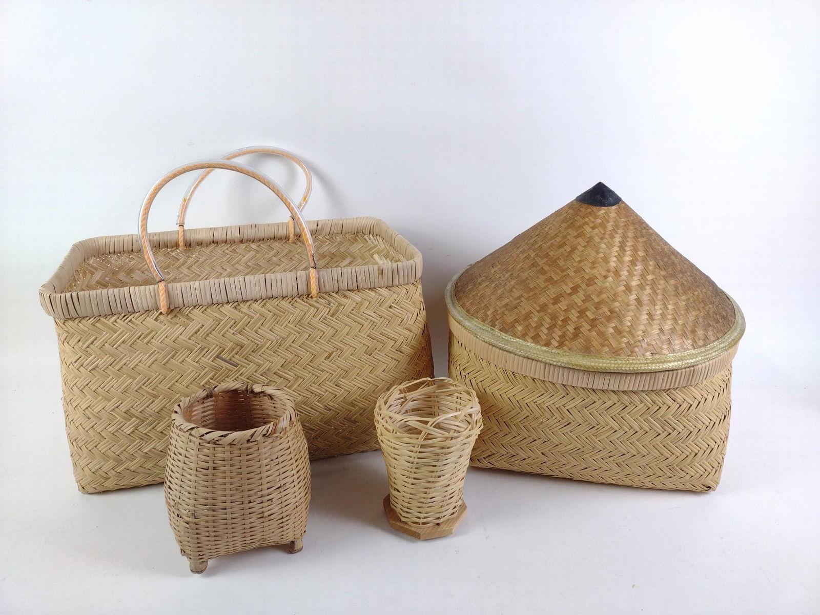 4 Asian Baskets and Conical Hat