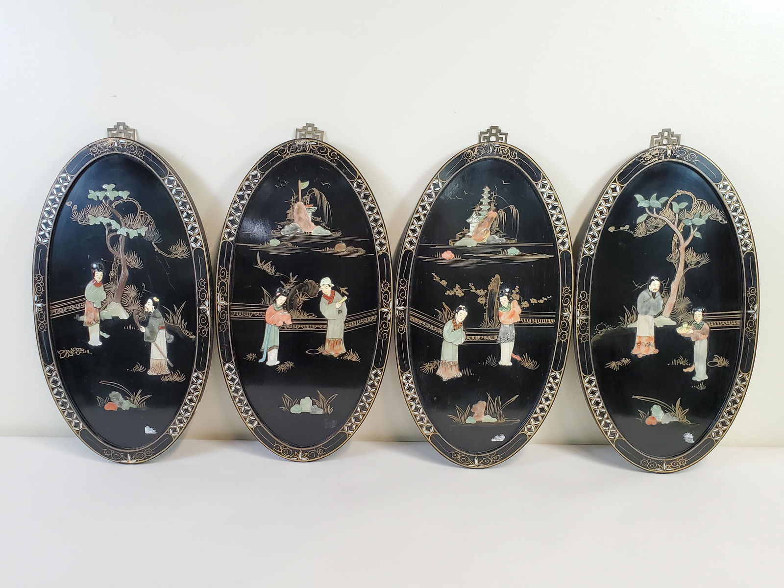 4 Asian Panels with Hardstone
