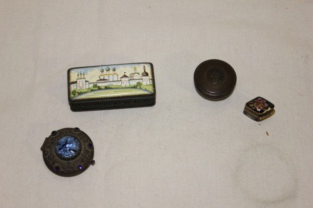 Large lot of misc. silverplate flatwares2 days LeftDUTCH AND ENGLISH BRASS TOBACCO BOXES, LOT OF FOUR5 days LeftLOT OF 3 PORCELAIN PILL BOXES2 days LeftTray Lot with Vintage Elgin and Straffrod Compacts - Brighton Business Card HoldersSIX ASSORTED ANTIQUE WOODEN BOXES6 days LeftRussian Lacquer & Hand-Painted Porcelain BoxesMar 12, 2026Jay Strongwater Style Jeweled Trinket Boxes 4pcsMar 12, 20264pc Silver-Plated Hand-Painted Pill Boxes6 days LeftVintage Group of Trinket Boxes and Solid Perfume Compacts4 days LeftTrio of Vintage Trinket Boxes, Made in Italy - 2-4"Mar 08, 20265 Enameled BoxesMar 14, 20264 Snuff BoxesMar 14, 20264 Sterling & .900 Silver CasesMar 14, 2026(3) Small Jewelry BoxesMar 10, 20262 Small Trinket Boxes - 800 Silver2 days Left8 Enameled BoxesMar 14, 2026