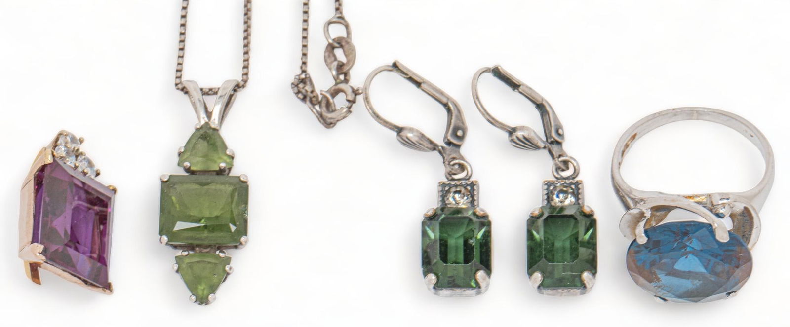 10ct Natural Sapphire Emerald Green Garnet Diamond Tennis Bracelet 14kt gold**Amethyst, Peridot, Blue Topaz, and Zirconia Studded EarringsMar 17, 2026Amethyst, Peridot, Blue Topaz, and Zirconia Studded Earrings5 days LeftA Chain with Gemstone Pendants & Rings in 14K & 10K6 days LeftPlated 18KT Yellow Gold 1.71ctw Dyed Emerald and White Topaz Jewelry Set1 day LeftPlated 18KT Yellow Gold 1.71ctw Dyed Emerald and White Topaz Jewelry Set6 days LeftChinese Jade Malachite and Amethyst Beaded Necklaces (3)Mar 28, 20269.98ct GIA Emerald Diamond Drop Necklace 18k Gold5 days LeftZirconia Encircled Peridot, Amethyst, Citrine Stone EarringsMar 17, 2026Natural Amethyst Topaz Peridot and Garnet 925 Sterling Silver Earrings Jewelry 7.82 GramsMar 15, 2026Zirconia Encircled Peridot, Amethyst, Citrine Stone Earrings5 days LeftA 9ct gold blue topaz pendant and a 9ct gold amethyst pendant,5 days LeftGroup of Green & Purple Stone Bead Necklaces withFeb 28, 202614k Gold 4.65 Ct Natural Tourmaline & Diamond Jewelry Set14k Gold 13.99 Ct Natural Tourmaline & Diamond Jewelry SetTHREE PAIRS OF GOLD, DIAMOND, EMERALD, AND GLASS TRIPLET EARRINGS