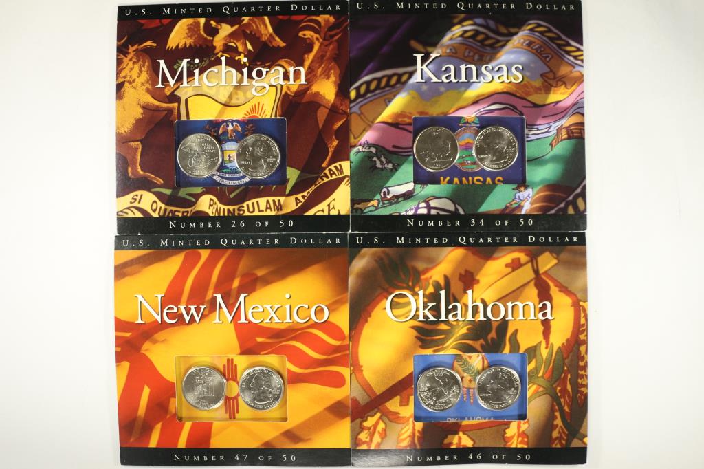 4 ASSORTED P & D STATE QUARTERS BRILLIANT UNC