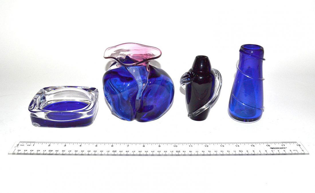 4 Blue & Clear Glass Articles
