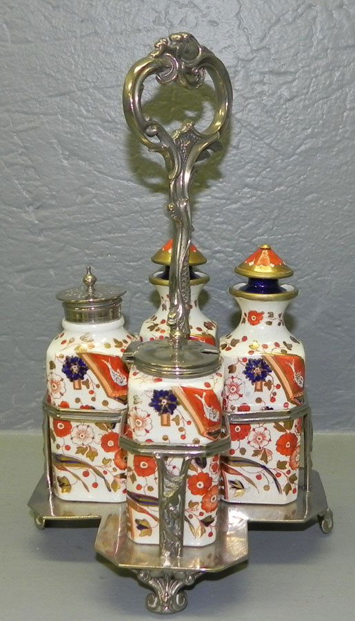 4 bottle cruet set in Old Derby pattern.