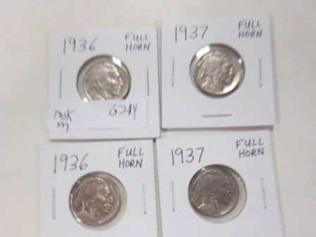 4 Buffalo nickels in plastic