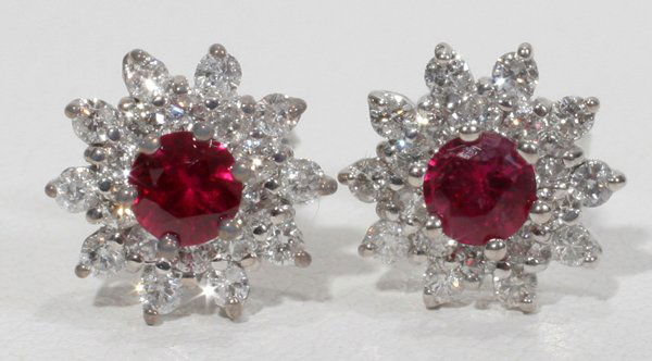 .4 CT RUBY & .50 CT. DIAMOND EARRINGS, DIA 1/4"