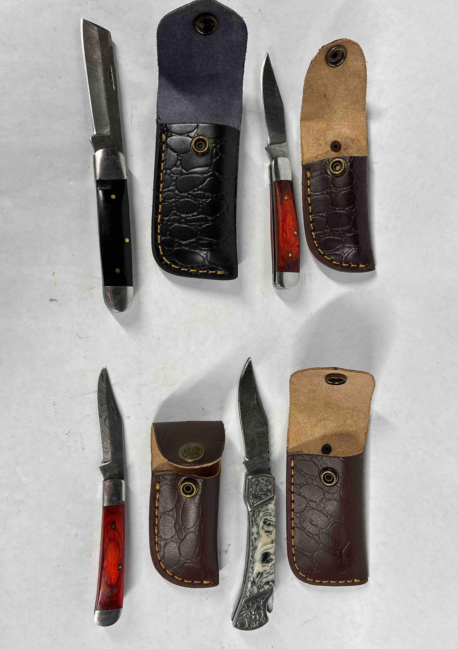 Lot of 20 Damascus Steel Folding Hunting Knives with Wood Handles & Leather SheathsChairish Auctions4.5(10.4k)$150