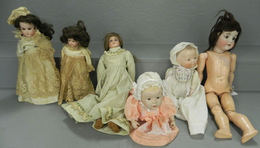 4 early & 2 later bisque head dolls
