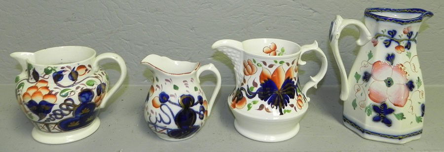 (4) early decorated pitchers.