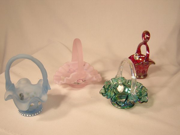 (4) Fenton Mini Baskets --- 2 hand painted