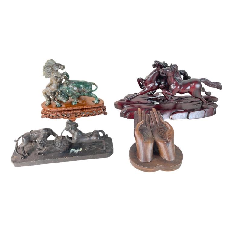 (4) Four Misc Items. Horses, Hands And Hardstone