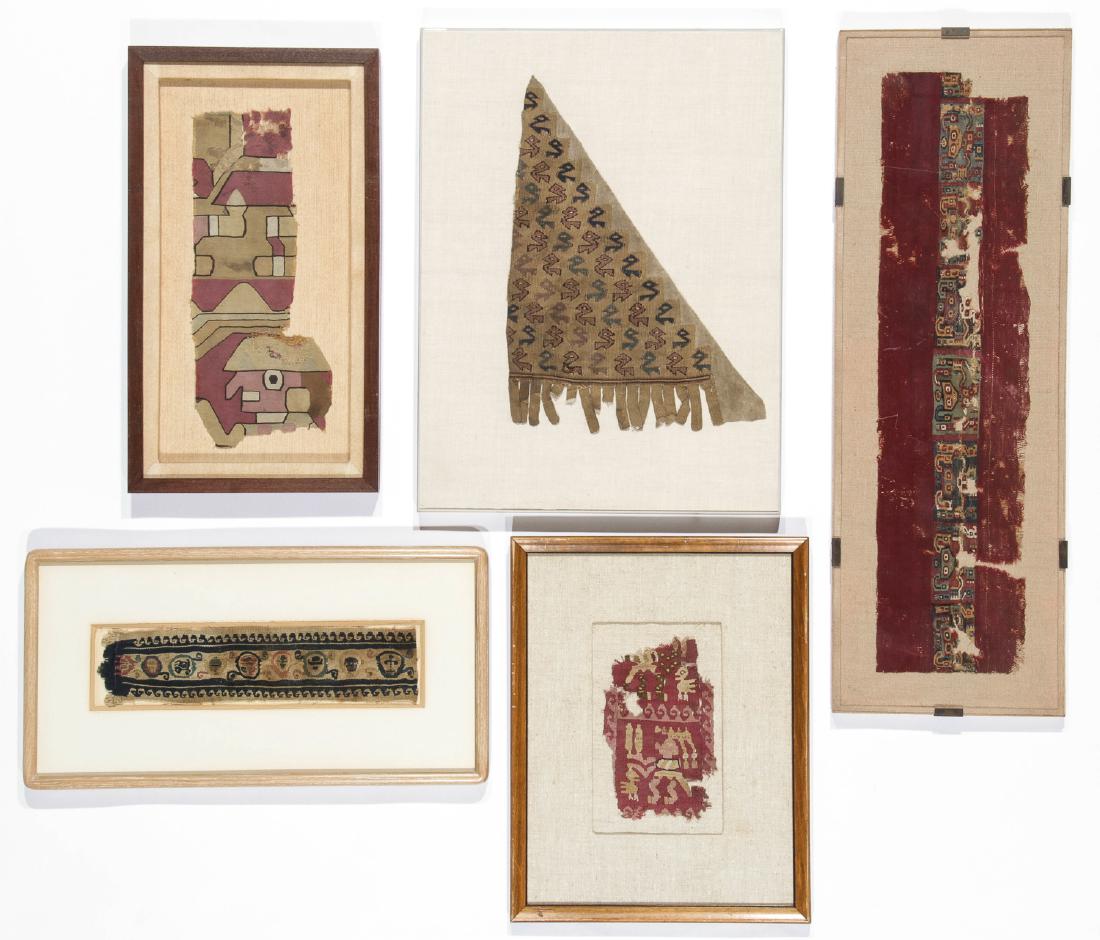 4 Framed Pre-Colombian & 1 Coptic Textiles