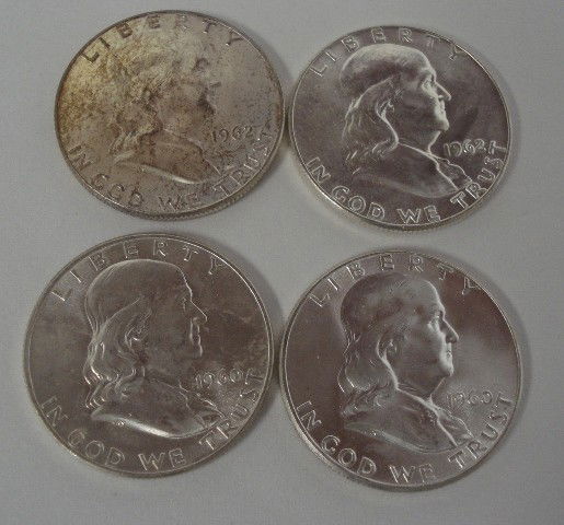 4 Franklin Half Dollars. (2)1962, (2) 1960