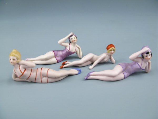 4 GERMAN BISQUE BATHING BEAUTIES FIGURINES