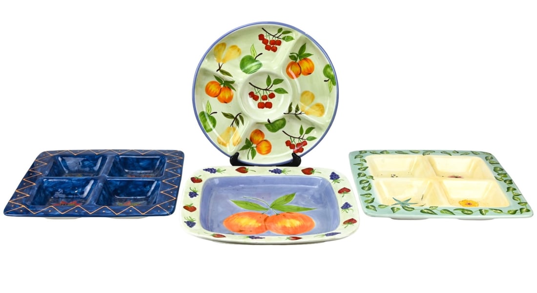 4 Hand Made Ceramic Novelty Snack Serving Platters
