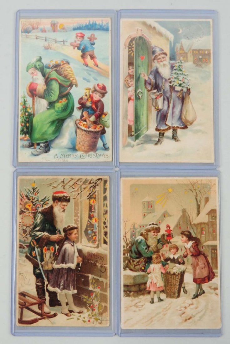 4 Hold to Light Santa Postcards.