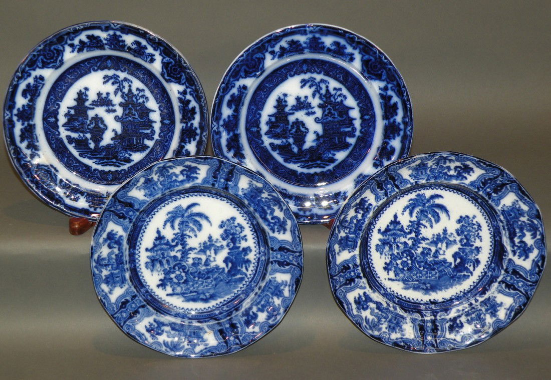 4 ironstone flow blue plates