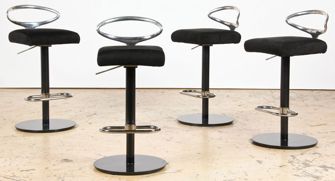 TWO SWIVEL AND ONE FIXED IRON AND EMBOSSED LEATHER BAR STOOLS.Kamelot Auctions4.4(346)$100Mar 24, 2026