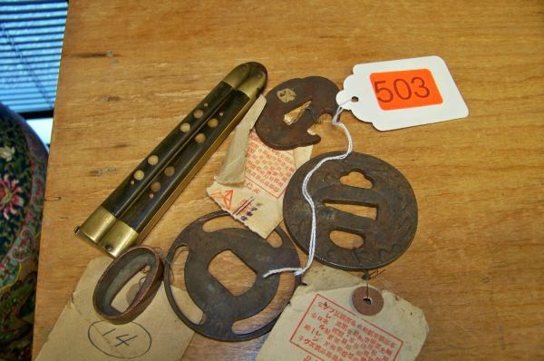 4 JAPANESE ASSORTED SWORD MOUNTS: 3 TSUBAS