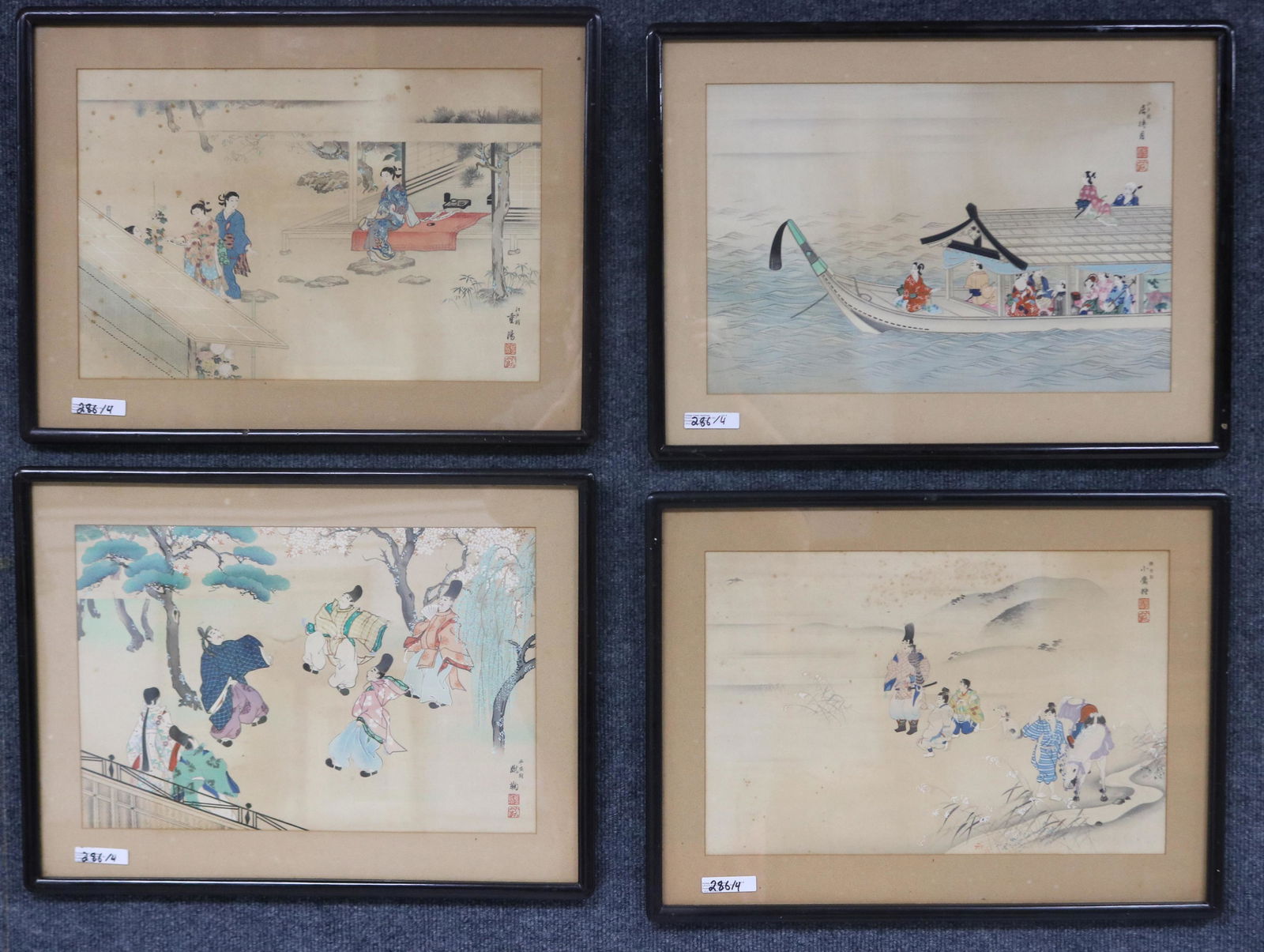 4 JAPANESE BLOCK PRINTS, SIGNED LOWER RIGHT,