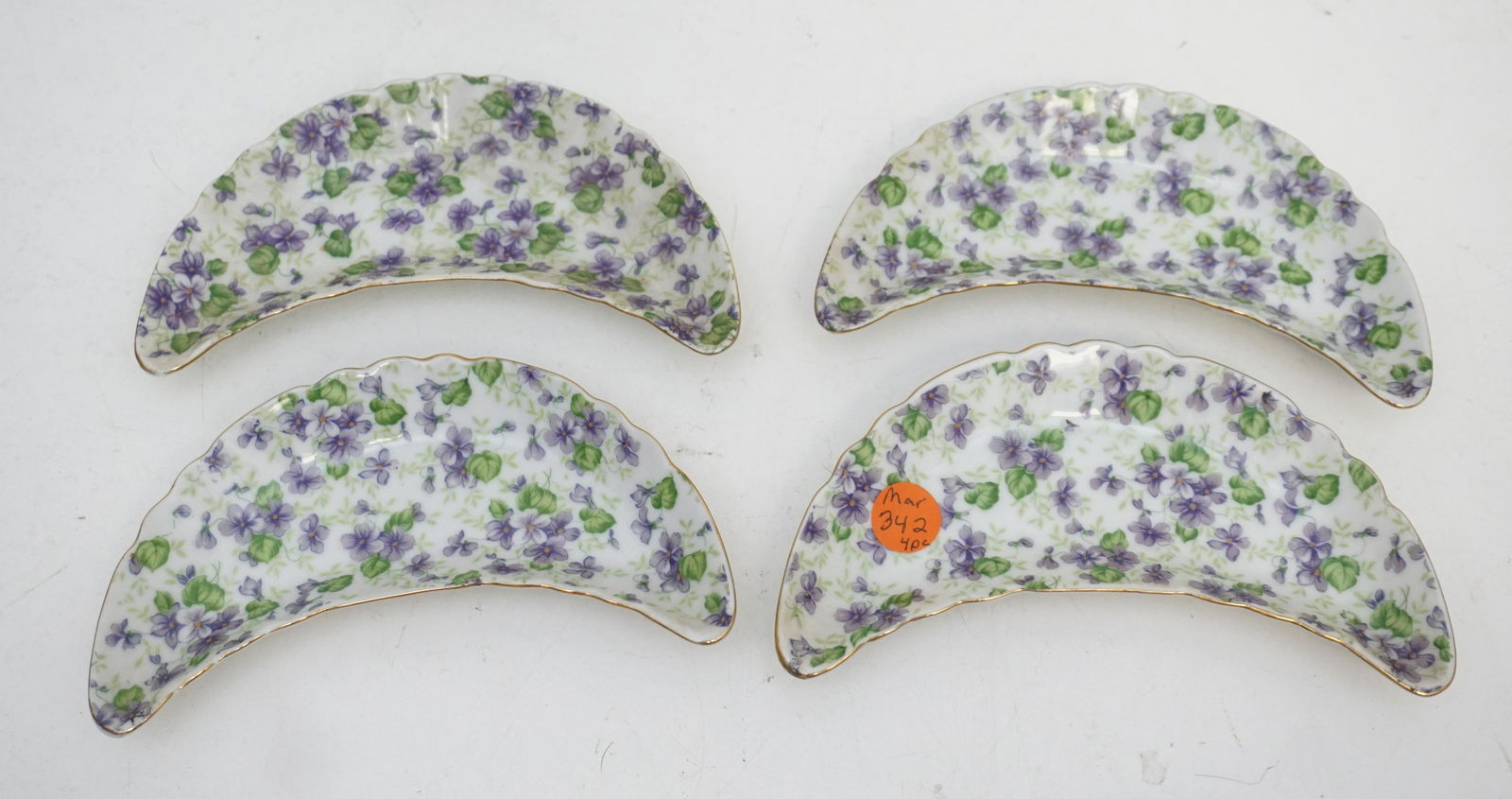 4 LEFTON CHINA VIOLET CHINTZ BONE PLATES
