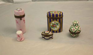 4 Limoges Trinket Boxes Sewing, Perfume, Mini