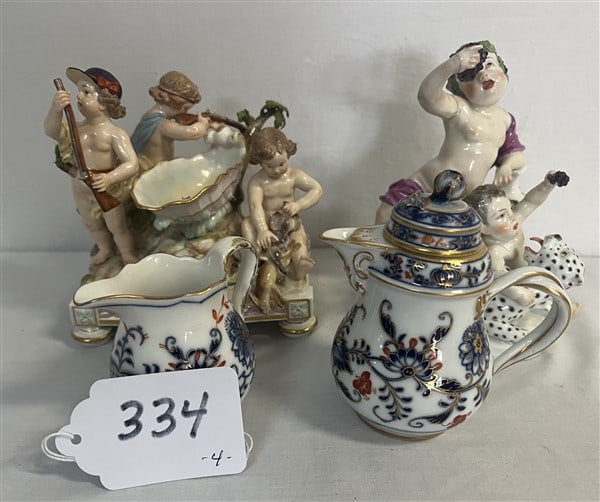 Lot of Three Victorian Staffordshire Porcelain Figural GroupsFeb 21, 2026Lot of 7 Staffordshire Porcelain Small Painted Historical FigurinesFeb 21, 2026A lot of two German Passau marked and decorated porcelain figural groupsFeb 24, 2026Lot of 3 AS-IS Pieces of Porcelain1 day LeftA lot of four German Volkstedt various animated porcelain figural groupsFeb 24, 2026A lot of three Saxony style decorated porcelain figural groupsFeb 24, 2026A composed lot of seven variously marked and decorated German saxony style porcelain figurinesFeb 24, 2026A lot of six German Volkstedt and Napoli decorated porcelain figurinesFeb 24, 2026A composed lot of two Italian Napoli porcelain vase and figural group.Feb 24, 2026Lot of porcelain (4x)1268 Lots Away(2) LARGE MEISSEN STYLE PORCELAIN FIGURES, LADY & GALLANT WITH FLOWERS, 24"H, 22"HFeb 22, 202619th Century Meissen Porcelain Figurines – Set of the Four SeasonsPair of Antique English Porcelain Floral Vases – c.18603 18th century Meissen porcelain cups. 1) Small round with landscape decorations. 3in diameter. 2)Mar 01, 2026(3 Pc) Meissen Porcelain Allegorical Figurines GroupingMar 03, 2026Meissen, Etc. Porcelain Tableware, 5 Pcs.Mar 12, 2026