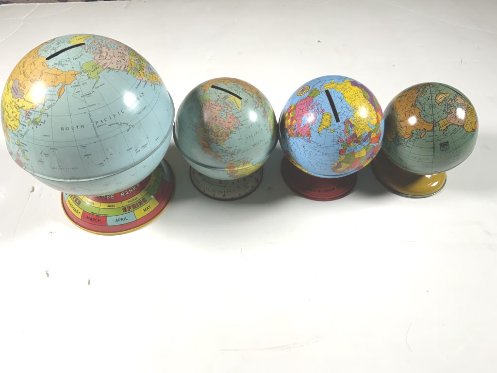4 metal Globe Banks
