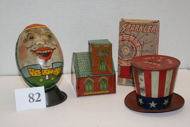Toy Lot4 days LeftToy Lot4 days LeftToy Lot4 days LeftToy Lot4 days LeftToy Lot4 days LeftCast Iron and Misc. Toy Lot4 days LeftLot of 3 Vintage Toys w/ Mattel SQ Dancing TwinsMar 07, 2026Bronze & Metal Works, Banthrico Financial Inst. Advertising Coin Banks Lot of 6Mar 16, 2026LOT OF TALC / INCENSE TINSFeb 26, 2026LOT OF VINTAGE ADVERTISING TINSFeb 26, 2026LOT OF TOY CARS AND BUSFeb 26, 2026LOT OF TIN LITHO ADVERTISING TINSFeb 26, 2026LOT OF CAST IRON STILL BANKSFeb 26, 2026LOT OF VINTAGE MERCURY GLASS CHRISTMAS ORNAMENTSFeb 26, 2026LOT OF BRONZE AND CAST IRON SMALLS, TOYSFeb 26, 2026DISCOVERY LOT VINTAGE COLLECTION CARNIVAL GAMES AND MULTICULTURAL DOLLS4 days Left