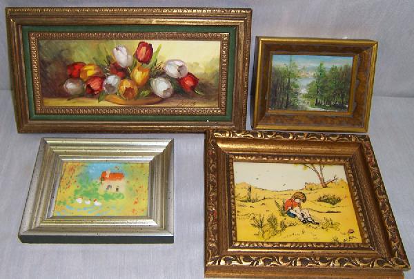 4 miniature oil paintings