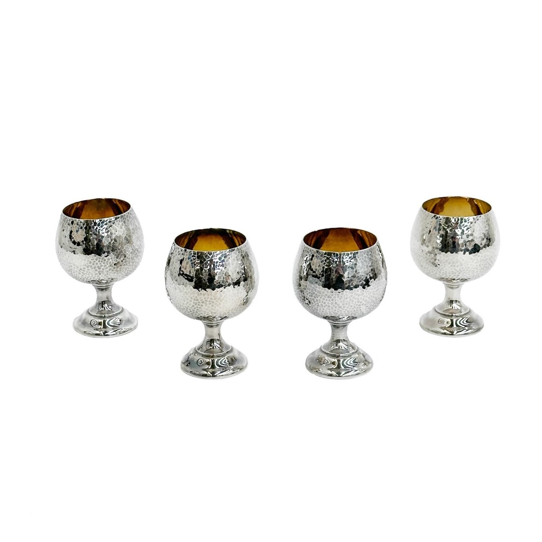 4 Mori Yoko Japanese Silver Hand Hammered Goblets c1930