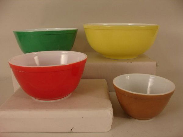 4-NESTING PYREX BOWLS, MULTI COLOURS, RANGE: 6-