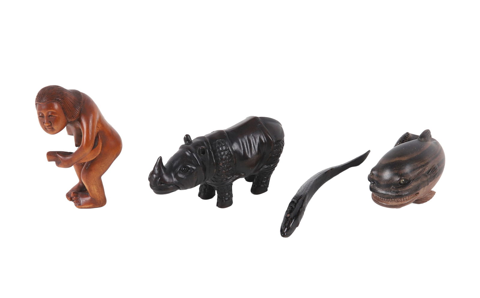 LOT (4) ELEPHANT FIGURINES5 days LeftLot of Four Japanese Bone Carved Netsuke including Rotating Face KabukiFeb 28, 2026Lot of 4 Decorative Items w/Finely Sculpted Elephant Head MotifsMar 01, 2026LOT OF CAST IRON BANKS AND BOTTLE OPENERFeb 26, 2026Carved Soapstone Figures, Medallions6 days LeftCarved Stone (5) Figures / PendantsFeb 25, 20265 Red Rose Tea Porcelain Mini Animal Figurines2 days Left(3) Edo or Meiji Period flora netsuke2 days LeftMeiji Period, (3) netsukes4 days Left(2) Edo Period recumbent ox netsuke2 days LeftCollection of Japanese Carved Objects, Netsuke5 days LeftCollection Japanese Carved Wood Objects, Okimono, Netsukes5 days LeftThree Japanese Style Netsuke FigurinesFeb 26, 2026Group of Assorted Elephants figures and MoreMar 07, 2026Miniature Animal carvings from Variety of Stone MaterialsMar 02, 2026Group of Five Small Carved Figurines and ObjectsFeb 26, 2026