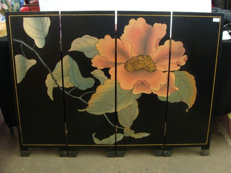 4 Panel Black Lacquer Hand Painted Room Screen Divider