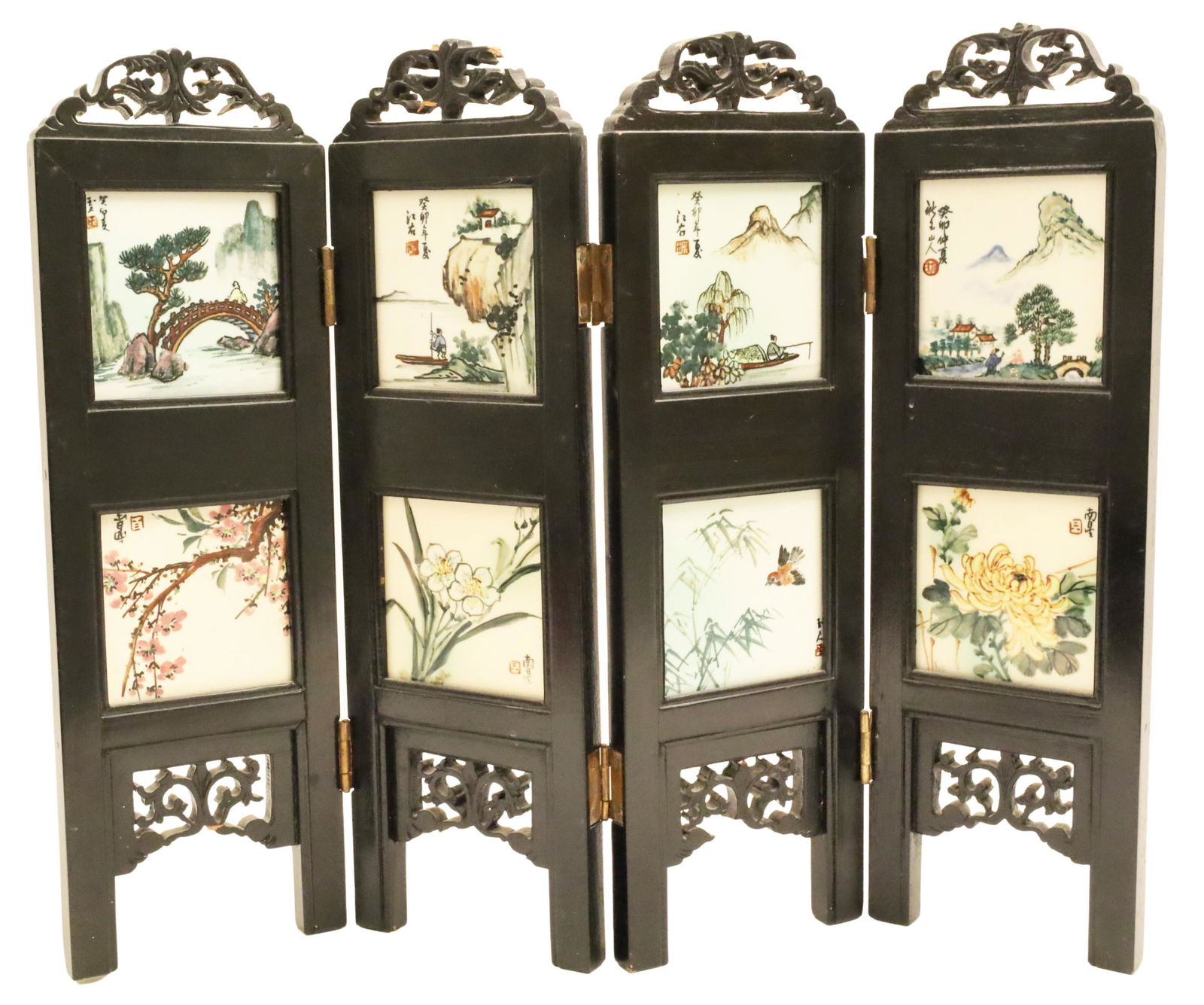 CHINESE MINIATURE 6 PANEL PAINTED TABLE SCREENApr 05, 2026Chinese Four Porcelain Insert Panel Floor Screen4 days LeftFour-panel Zitan Wood Screen with Jade Inlay of Flowers, Birds and Figures3 days LeftLarge Huanghuali Screen Inlaid with Porcelain Panels3 days LeftA Chinese lacquered wooden table screen with jade and cloisonné, and a pair of wall panels16 hrs LeftInlaid 8-Panel Chinese Porcelain Table Screen6 days LeftA set of exquisite zitanwood painted four-bar hanging screens inlaid with gems and flowers andApr 04, 2026A Chinese six-panel hardstone-inlaid tixi screen, Republic period4 days LeftCHINESE JADE AND STONE FLORAL TABLE SCREENS W WOOD STAND4 days LeftA Chinese six-panel black lacquer hardstone-inlaid screen, 18th century4 days LeftExquisite Qing Dynasty handmade antique rosewood table screen inlaid with Hetian jade and carved10 hrs Left96" Tall Vintage Oriental Lacquer ScreenJul 05, 2025Zitan Wood Inlaid Shell Four PanelsApr 02, 2026A Chinese ink-painted biscuit porcelain table screen, Republic period4 days LeftChinese Lacquer Screen w Inset Ink on Paper ScenesMar 28, 2026Shibayama Art, Meiji Era, Ebonized Wood, Lacquer, Two Panel Screen, Japan, 1890sApr 30, 2026