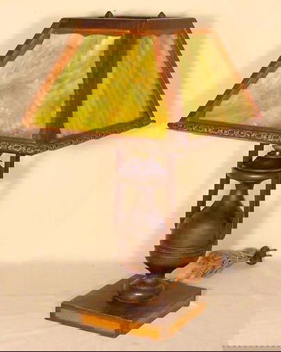 4 Panel Multicolor Slag Glass Table Lamp Nr