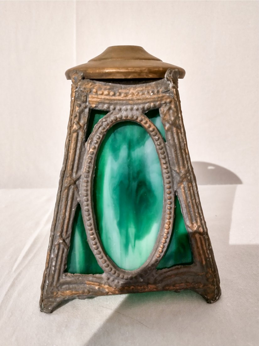 Antique Arts & Crafts bronze slag glass desk lamp. Mottled green and brown color slag glass panels.Tremont Auctions4.6(313)$75(1 bid)2 days Left