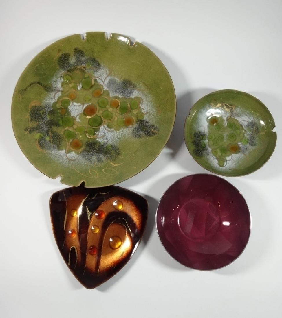 4 PC ENAMELWARE DISHES, INCLUDES 3 SIGNED PIECES BY