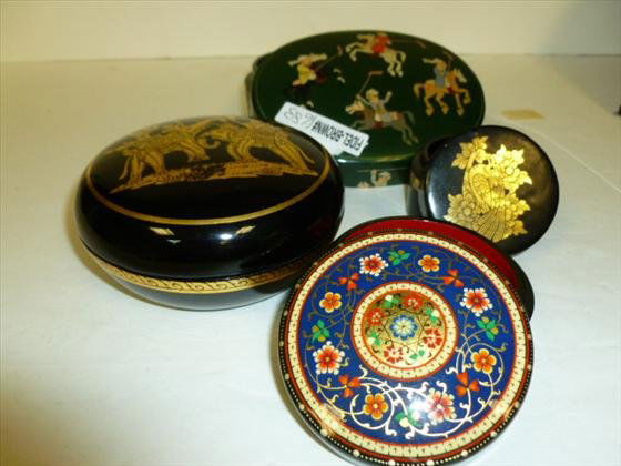 LOT OF THREE CHINESE VINTAGE JEWELRY BOXESMar 01, 2026Lot Of 4 Vintage Jewelry Boxes With Various Pieces Of Costume Jewelry / Accessories4 days LeftOnyx, Porcelain & Enamel Trinket Boxes 4pc LOTFeb 26, 2026ENAMEL LOT OF TRINKET BOXES PILLBOXES INCL. HEREND, LIMOGES, NEIMAN MARCUS4 days LeftLot Of Three Vintage Russian Lacquered Paper Mache Round BoxesFeb 28, 2026Lot of antique jewelry and accessories. To include: 1) 14K gold framed micro mosaic pin of ruins.Mar 01, 2026LOT OF BISCUIT AND CHOCOLATE TINSFeb 26, 2026Korean Lacquer MOP Shell Inlay Boxes & Tray 3p LOTFeb 26, 2026Joblot 7 Vintage Pill Boxes Trinket BoxesEstee Lauder Dunhill Ciner Limoges Compact MirrorFeb 26, 2026(5) JAPANESE BLACK LACQUER PAINTED TABLE BOXES4 days LeftVarious ItemsFeb 25, 2026(4) JAPANESE LACQUERED TABLE BOXES, 1 WITH MOP INLAY3 days LeftAntique lap desk, Chinese lacquer jewelry box, and more boxesFeb 26, 2026Indo-Persian Papier Mache Hand-Painted Lacquered Hunting Boxes (3)7 days Left4 Papier Mache BoxesMar 14, 2026