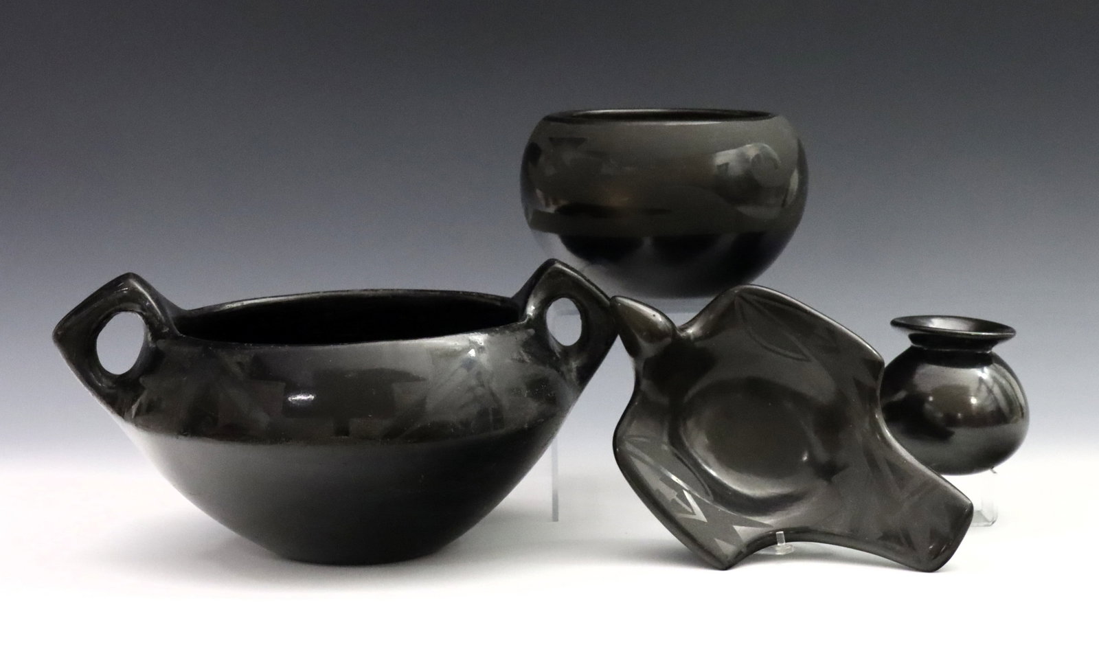 4 pc Native American Blackware Earthenware