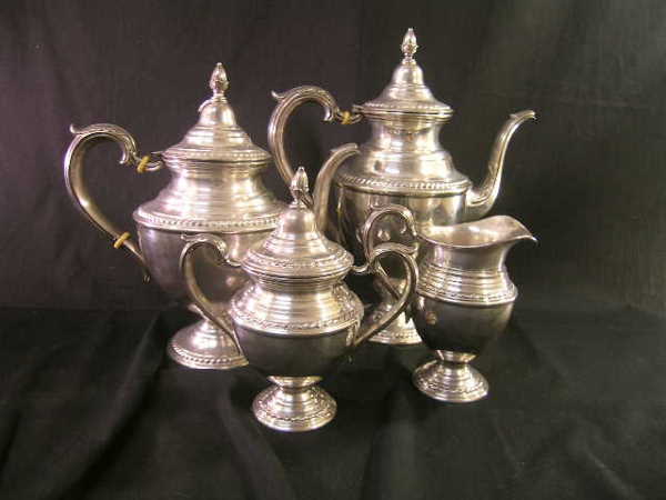 4 PC ROGERS STERLING SILVER TEA SET FOOTED