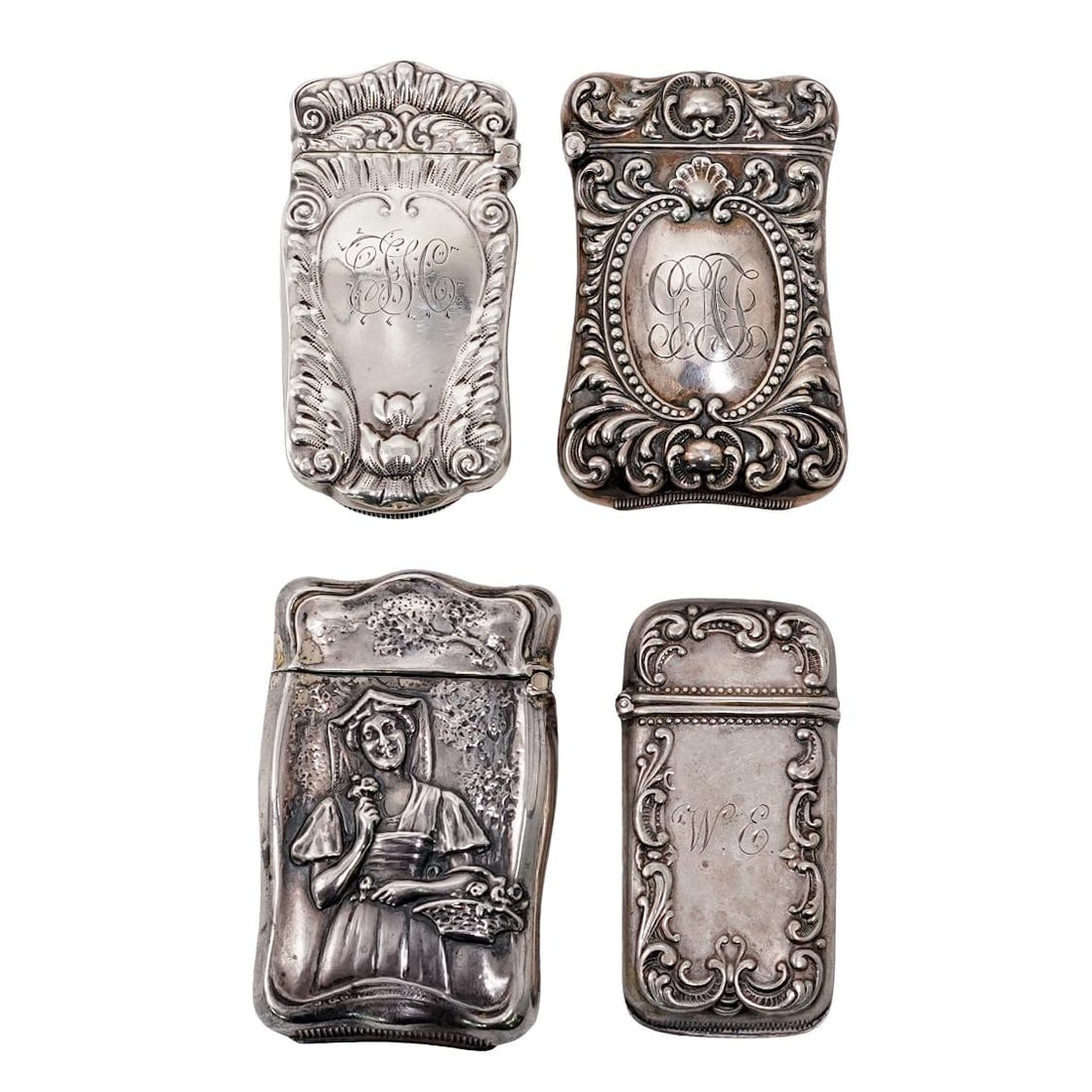(4 pcs) Antique Sterling Silver Match Holders