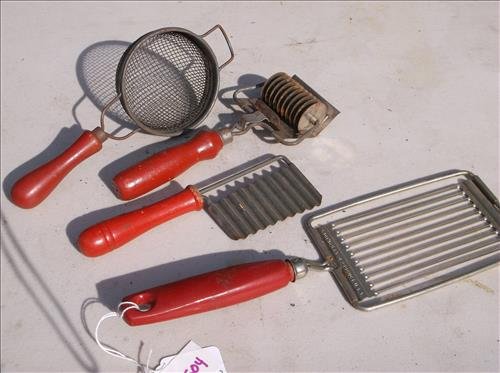 LOT 4 KNIVES WITH DECORATIVE HANDLESMar 05, 2026Lot of 32 Antique Metal Kitchen Utensils, Wooden Handles6 days LeftLOT OF VINTAGE KITCHENWAREFeb 26, 2026LOT OF VINTAGE KITCHENWAREFeb 26, 2026LOT OF VINTAGE KITCHENWAREFeb 26, 2026LOT OF VINTAGE TIN KITCHENWAREFeb 26, 2026Lot of Wood Carver's AccessoriesFeb 28, 2026LOT OF VINTAGE KITCHEN UTENSILSFeb 26, 2026LOT OF VINTAGE KITCHEN UTENSILSFeb 26, 2026LOT OF WROUGHT IRON KITCHEN UTENSILSFeb 26, 2026Universal Meat Grinder No. 3 Parts Vintage Metal KitchenwareFeb 23, 20265 Piece Hand Forged Damascus Steel Chef Knife Set with Hardwood Handles & SheathsBUFFALO SKINNING KNIFE AND FLATWAREFeb 26, 2026FOUR VINTAGE KITCHEN GADGETS MOULI GRATER, ICE CRUSHER, SMALL ROLLING PIN, AND WOOD MIXING STICKGroup of Assorted Vintage Kitchen Baking Tools and MoreMar 07, 2026Tools and Accessories Including Hand Tools, Fastening Supplies, and Measuring Tools2 days Left