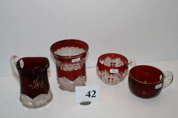 Lot of StemwareMar 04, 20264 pc Lot ABP American Brilliant Period Cut Glass Libbey & MoreMar 01, 2026Lot of Ruby Red GlassMar 04, 20264 pc Lot Viking Ruby Red Glass6 days Left13 pc Lot Collectible Glass Heisey & MoreMar 01, 2026Bohemian Red, Amber & Blue Glass Goblets 3pc LOT4 days Left4 pc Lot Victorian Coralene Satin Art GlassMar 01, 20264 pc Lot High End Collectible GlassMar 01, 20264 pc Lot of Enameled Victorian Glass Pitchers & Tumblers6 days Left5 pc Lot Riverside Ruby Stained Victoria Victorian Glass6 days Left8 pc Lot Fenton Amethyst Wisteria Opalescent Art Glass6 days Left7 pc Lot Victorian Mother of Pearl Satin Art GlassMar 01, 2026NATURAL BRIDGE, SHENANDOAH VALLEY OF VIRGINIA, GLASS SOUVENIR ARTICLES, LOT OF 17Mar 06, 20265 pc Lot Victorian Uranium Vaseline Cranberry Hobbs & More Victorian Glass6 days Left4 pc Lot Ruby Stained Tarentum Ladder & Diamonds Cruet Shakers, Toothpick HolderMar 01, 2026Lot of 5 Desert Glass CupsMar 01, 2026