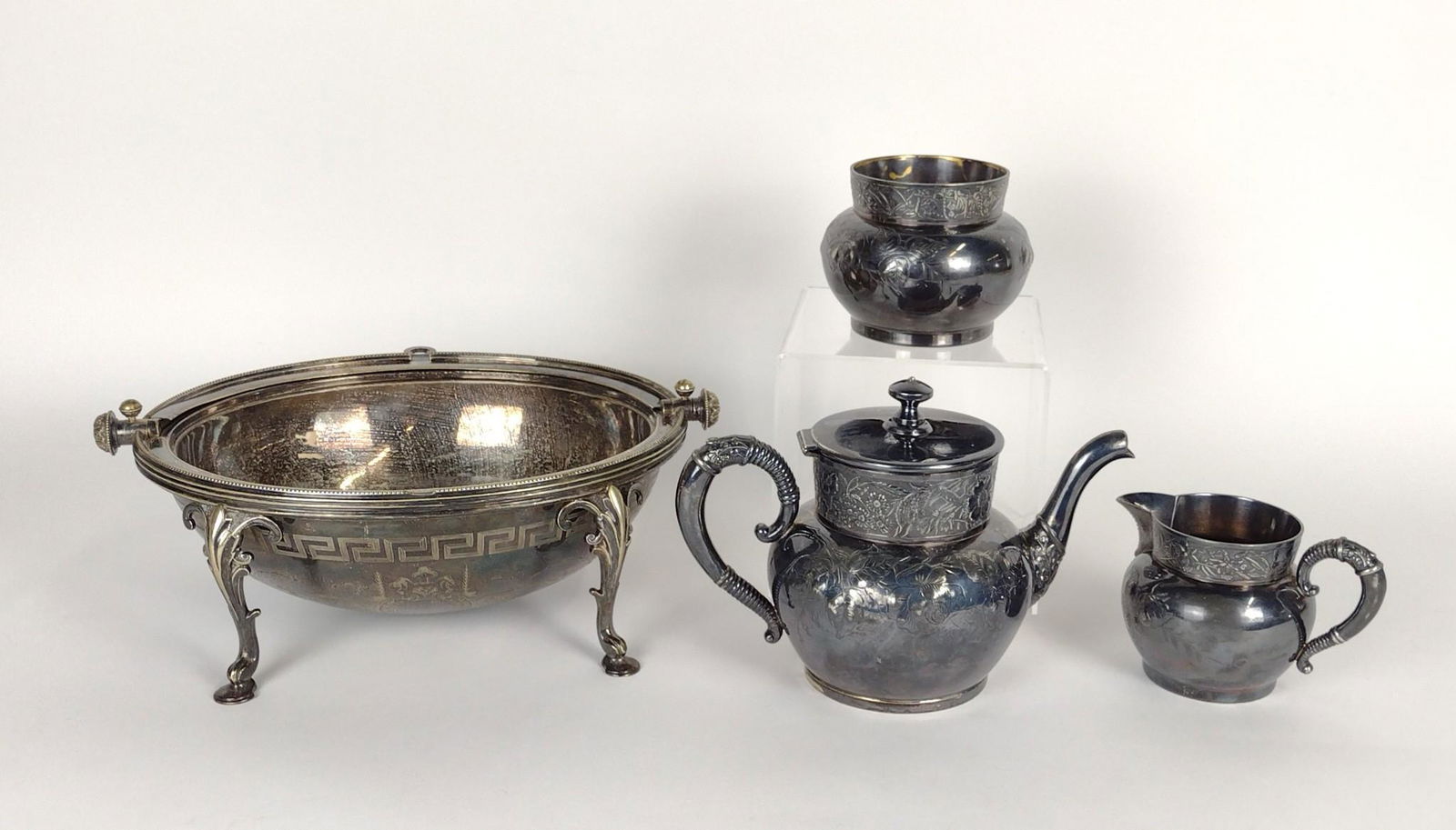 Vintage 5Pc Mixed Lot Of Silver Plate1 day Left9 pc Lot Silverplate & SterlingFeb 28, 2026Lot of 5 Silver Plate, incl. George Gebelein of Boston2 days Left3 pcs Vintage Silver Plated Tea Pots, incl. 1x W.W.H. & Co. & 1x Homan. Very Good Condition.(4) STERLING SILVER WEIGHTED BASES COMPOTES3 days LeftVintage Silver Plate Tableware CollectionMar 05, 20263 pcs Vintage Silver Plate Tea Pots, incl. 2x Silver on Copper Pieces. Very Good Condition.3 pcs Vintage Silver Plated Tea Pots, incl. 1x Brooklyn & 1x Aurora? Co. Very Good Condition.(4) STERLING SILVER WEIGHTED BASE CREAMERS,SUGARS3 days Left3 pcs Vintage Silver Plated Teapots, incl. Homan, Essay & Colonial Co. Good Condition.(6) STERLING SILVER DESSERT BASES3 days Left(3) LARGE STERLING SILVER WEIGHTED BASE COMPOTES3 days Left(4) STERLING SILVER WEIGHTED BASE CREAMERS,SUGARS3 days Left(6) STERLING SILVER WEIGHTED CANDLEHOLDERS3 days Left(5) Chinese silver trophies, early 20th c.2 hrs Left3 pcs Antique Silver Plated Tea Pots w/ Ornate Motifs, incl. Meriden Co., Roger's & Reed & Barton.