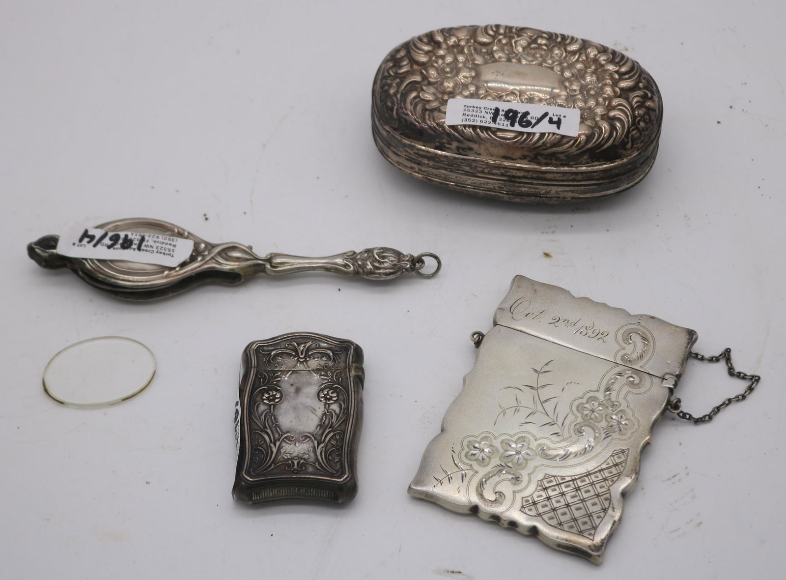 4 PCS. STERLING SILVER EMBOSSED HINGED BOX 1 1/2"