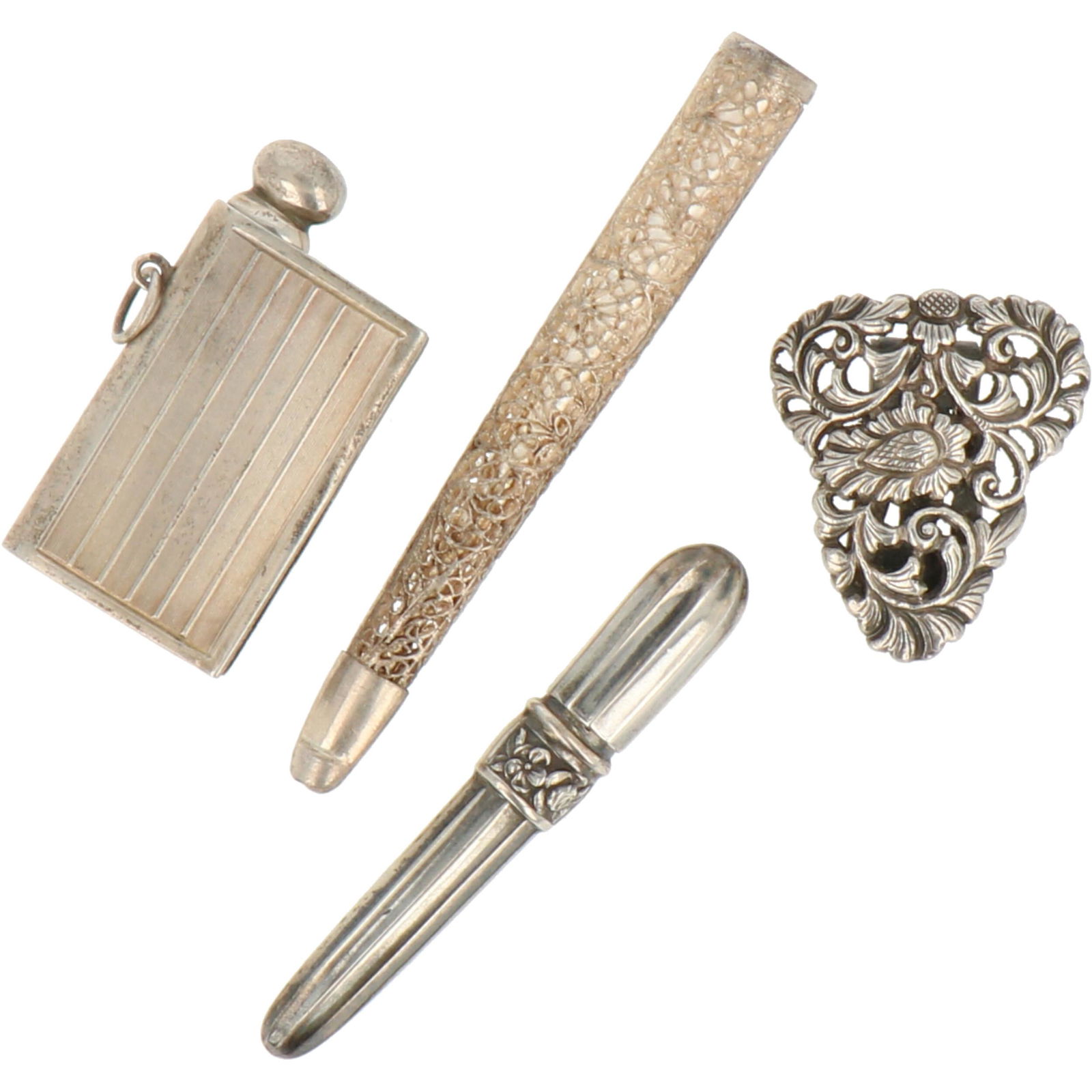 LOT ASSORTED ESTATE STERLING JEWELRY FINDINGS, 20TH C.23 hrs LeftLOT ASSORTED ESTATE STERLING JEWELRY FINDINGS, 20TH C.23 hrs LeftLOT ASSORTED ESTATE STERLING JEWELRY FINDINGS, 20TH C.23 hrs LeftLot of 4 Victorian silver pins. Largest: 2.75in wide. 0.5 ozt.Mar 01, 2026Lot of silver cutlery113 Lots AwayLOT OF 3: C. 1910S-20S SCHRADE CUT CO. AND PRESS BUTTON KNIFE CO. STERLING SILVER DOUBLE5 days LeftLot of vintage 925 sterling silver pendantsJun 30, 2025Group lot of Vintage 925 sterling silver pendantsJun 30, 2025GROUP LOT OF SILVER ITEMS5 days Left5 ANTIQUE AND VINTAGE ST SILVER ASSORTED ITEMS2 days Left19th/20th Century Women's Vanity Make-up Sterling Silver Lot (6)Mar 28, 2026Silver Cigarette Cases5 days LeftGroup of Smoking & Other AccessoriesMar 03, 2026Silver Items, Russia5 days LeftANTIQUE EUROPEAN DANISH SILVER PLATED ITEMS22 hrs LeftSterling Silver Scent Bottles & PillboxMar 17, 2026